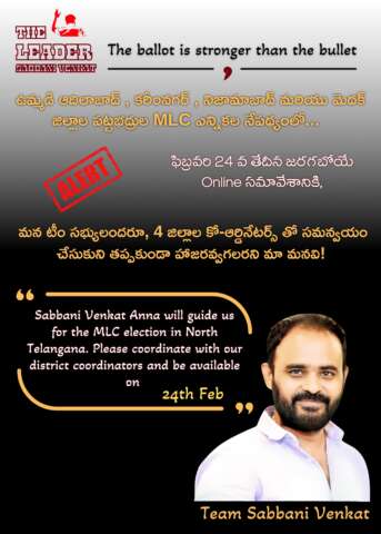 కరీంనగర్ మెదక్ నిజామాబాద్ ఆదిలాబాద్ తదితర ఉమ్మడి జిల్లాలకు చెందిన పట్టభద్రుల ఎన్నికకు సంబంధించిన పోలింగ్ జరగడానికి కేవలం 100 గంటల సమయం మాత్రమే ఉన్న తరుణంలో ప్రముఖ సామాజికవేత్త… రాజకీయ విశ్లేషకులు… జెన్ ప్యాక్ ( ZENPACT ) అనే మల్టీ నేషనల్ కంపెనీ వైస్ ప్రెసిడెంట్ గా పనిచేస్తున్న సబ్బని వెంకట్ ఆదివారం రంగంలోకి దిగడం చర్చనీయాంశంగా తయారైంది. గత కొద్దిరోజులుగా హైదరాబాదులో ఉద్యోగరీత్యా బిజీబిజీగా ఉంటున్న వెంకట్ తన స్వగ్రామమైన హుజురాబాద్ మండలం సిరిసపల్లి గ్రామానికి ఆదివారం మధ్యాహ్నం హుటాహుటిన తరలి రావడం వెనుక కారణాలు ఏమై ఉంటాయో అర్థం కావడం లేదని రాజకీయ పరిశీలకులు పేర్కొంటున్నారు. తన పర్యటనకు ముందే అందుబాటులో ఉన్న పట్టభద్రులందరినీ అప్రమత్తం చేసిన వెంకట్ ఆదివారం రాత్రి ఒక రహస్య సమావేశంలో మూడు గంటల పాటు వారితో చర్చలు జరిపినట్లు తెలిసింది. హుజురాబాద్ నియోజకవర్గం పరిధిలోని జమ్మికుంట ఇల్లంతకుంట వీణవంక హుజురాబాద్ కమలాపూర్ వావిలాల చెల్లూరు శంకరపట్నం మానకొండూర్ సుల్తానాబాద్ తదితర ప్రాంతాల నుండి వెంకట్ అనుచరులుగా గుర్తింపు పొందిన పట్టభద్రులు ఈ రహస్య సమావేశంలో పాల్గొన్నట్లు సమాచారం. పైన పేర్కొన్న మండలాలకు సంబంధించిన మెజారిటీ పట్టభద్రుల ఓట్లను సంపాదించుకోవాలని గత రెండు మూడు వారాలుగా బిజెపి కాంగ్రెస్ పార్టీలు వేర్వేరుగా విశ్వ ప్రయత్నాలు చేస్తున్న విషయం పాఠకులకు విధితమే. ఈ తరుణంలో వెంకట్ అనుకోకుండా రంగంలోకి రావడం వల్ల కాంగ్రెస్ పార్టీ అభ్యర్థికి లాభం జరగబోతున్నదా లేక భారతీయ జనతా పార్టీ అభ్యర్థికి లబ్ధి చేకూరబోతున్నదా అనే విషయంలో తర్జనభర్జన జరుగుతున్నది. రాజస్థాన్ రాష్ట్ర రాజధాని జైపూర్ పర్యటనలో ఉన్నటువంటి సబ్బని వెంకట్ ఆగమేఘాల మీద హైదరాబాద్ రావడం… అక్కడనుండి తన ప్రాంతమైన హుజురాబాద్ రావడంలోని ఆంతర్యం ఏమిటో తెలుసుకునే ప్రయత్నంలో బిజెపి కాంగ్రెస్ పార్టీలకు చెందిన “వేగులు” తలమునకలైనట్లు తెలుస్తోంది. భారతీయ జనతా పార్టీకి నష్టం కలిగించడం కోసం వెంకట్ ను అధికార కాంగ్రెస్ పార్టీ రంగంలోకి దించిందా లేక కేంద్ర బిజెపి మంత్రులు తమ పార్టీ అభ్యర్థిని గెలిపించుకోవడం కోసం వెంకట్ ను ఈ కీలక సమయంలో సద్వినియోగం చేసుకోవాలని భావించి ఆయనను అనూహ్యంగా రంగంలోకి దించిందా అనే విషయం తేలాల్సి ఉంది. గత సంవత్సర కాలంగా హుజురాబాద్ పాత తాలూకాను కేంద్ర బిందువుగా చేసుకొని అనేక సామాజిక కార్యక్రమాలను పెద్ద ఎత్తున నిర్వహిస్తుండడం… తన వాట్సాప్ గ్రూపులలో వందలాది యువకులను చేర్పించుకొని వారిద్వారా రక్తదాన కార్యక్రమాలను… ఇతరత్రా సేవా కార్యక్రమాలను వెంకట్ నిర్వహిస్తున్న విషయం తెలిసిందే. అదేవిధంగా కరీంనగర్ వరంగల్ సిద్దిపే