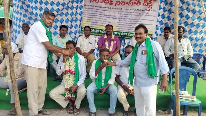 రైతులకు ఇచ్చిన హామీలను రాష్ట్ర ప్రభుత్వం తక్షణమే నెరవేర్చాలని డిమాండ్ చేస్తూ రైతు ప్రజా సంఘాల కరీంనగర్ జిల్లా అధ్యక్షుడు ముచ్చా సమ్మిరెడ్డి హుజూరాబాద్లో చేపట్టిన నిరవధిక నిరాహార దీక్షకు అనూహ్య స్పందన లభించింది. శనివారం ప్రారంభమైన ఈ దీక్ష ఆదివారం రెండో రోజుకు చేరుకోవడంతో, ఉమ్మడి జిల్లా వ్యాప్తంగా అన్ని వర్గాల ప్రజలు, రైతు సంఘాల నాయకులు మరియు వివిధ రాజకీయ పార్టీల ప్రతినిధులు భారీ సంఖ్యలో తరలివచ్చి సంఘీభావం ప్రకటించారు. ఈ సందర్భంగా రైతు ప్రజాసంఘాల సమాఖ్య జాతీయ అధ్యక్షుడు పోలాడి రామారావు మాట్లాడుతూ, అన్నదాతల సమస్యలపై ప్రభుత్వం అనుసరిస్తున్న నిర్లక్ష్య వైఖరిని తీవ్రంగా ఎండగట్టారు.