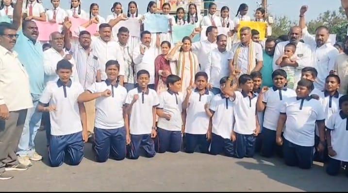 కిలోమీటరు మేర మానవహారం.. విద్యార్థుల గళం.