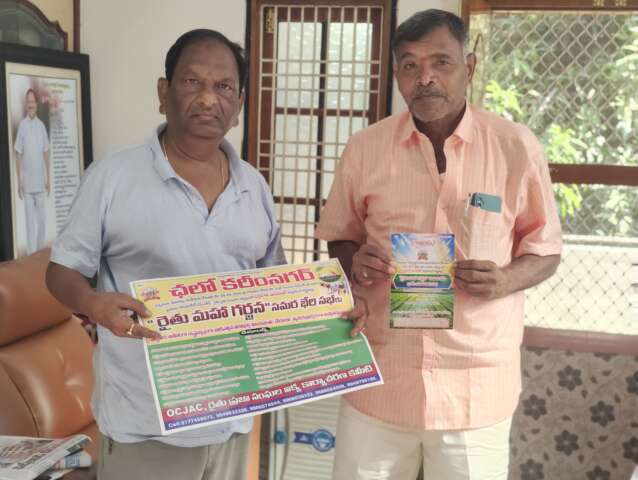 బాహు బలంన్యూస్ కరీంనగర్ : రాష్ట్రంలోని అన్నదాతల సమస్యల పరిష్కారం కోసం, ప్రభుత్వం ఇచ్చిన హామీల అమలు కోసం ఈనెల 28న కరీంనగర్ వేదికగా ‘రైతు మహాగర్జన’ సమరభేరి సభను నిర్వహించనున్నట్లు రైతు ప్రజాసంఘాల సమాఖ్య జాతీయ అధ్యక్షుడు పోలాడి రామారావు వెల్లడించారు. సుమారు రెండు లక్షల మందితో పార్టీలకతీతంగా ఈ భారీ బహిరంగ సభను సక్సెస్ చేస్తామని ఆయన ధీమా వ్యక్తం చేశారు. బుధవారం కరీంనగర్లో వివిధ జిల్లాల బాధ్యులతో సన్నాహక సమావేశం నిర్వహించిన ఆయన, అనంతరం సభకు మద్దతు కోరుతూ పలువురు రాజకీయ ప్రముఖులను ఆహ్వానించారు.